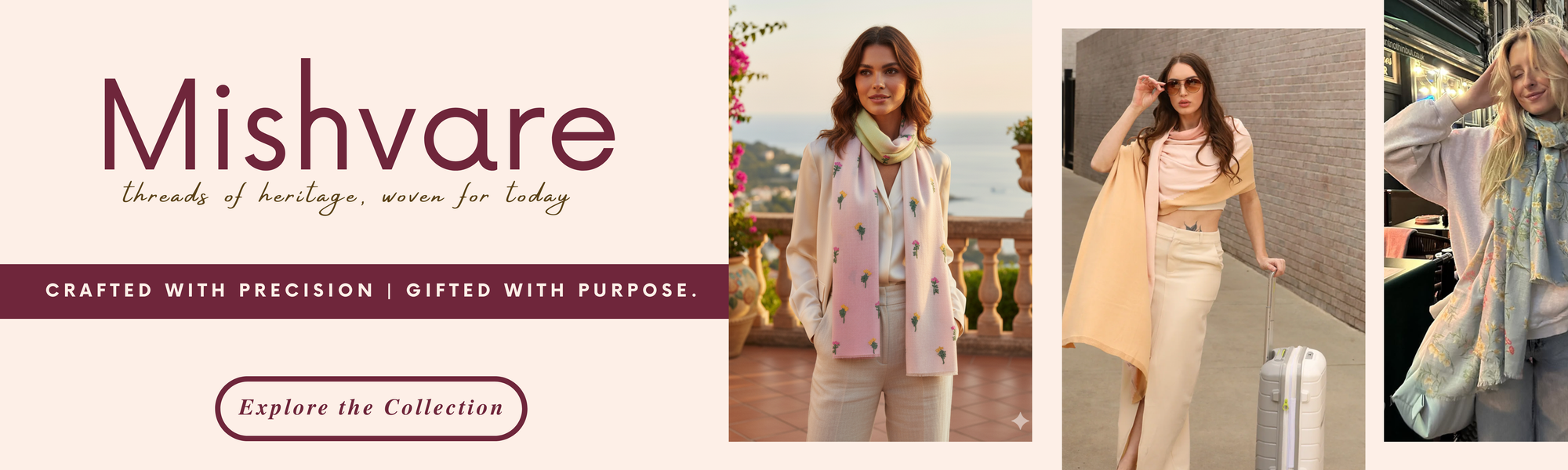 Mishvaré is where heritage meets modern elegance. Each piece is more than an accessory it is a story woven by skilled artisans, carrying forward generations of craft and culture. Made in small batches with sustainable materials, our creations embody the purity of tradition while embracing the refinement of contemporary design. With every shawl or scarf, you don't just experience craftsmanship you feel the quiet luxury of something timeless, soulful, and deeply meaningful.